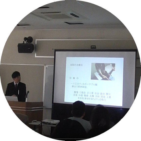 参加費無料の講演会を行っています。スライドを使った説明や、実際に体を動かしてアトピー治療について学ぶことができます。